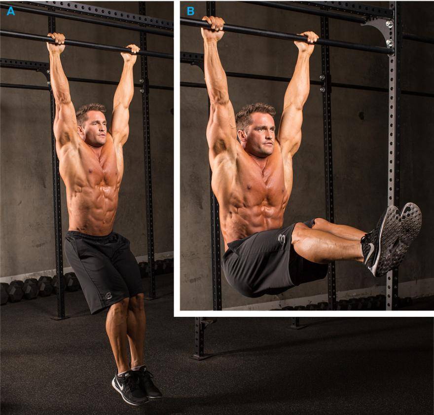 - Уголок в висячем положении – на турнике поднимаем ноги под 90 градусов и задерживаемся в таком положении 5 секунд, опускаем ноги;
