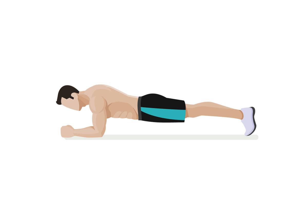 Упор лежа, руки под плечами. Спина ровно. Стоим в таком положении как можно дольше. Статическое упражнение поможет укрепить мышцы кора.
