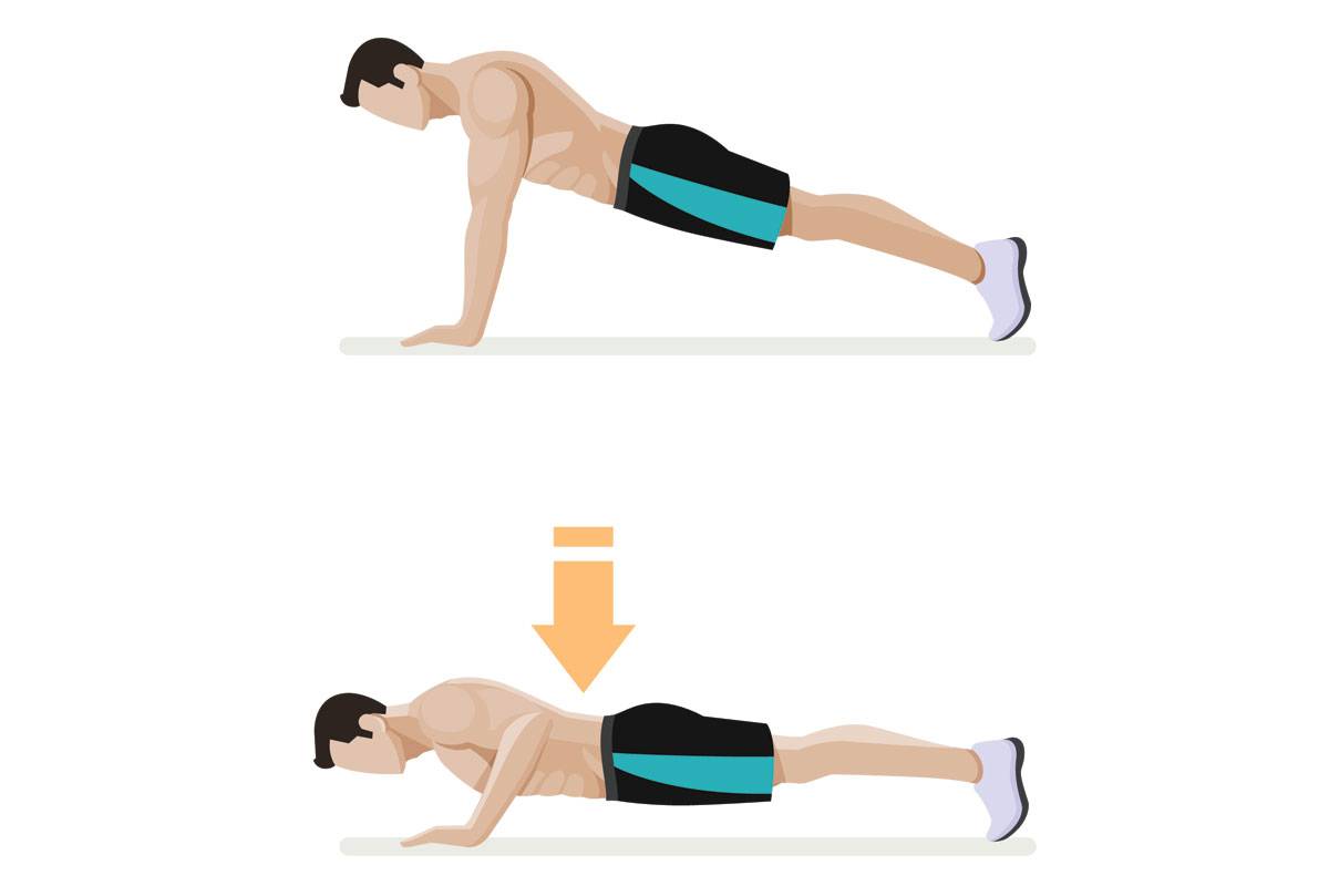 Принять упор лежа. Руки на ширине плеч (или выбирайте вариацию). Усилием рук поднимаете и опускаете корпус. Следит за тем, чтобы корпус был статичен.