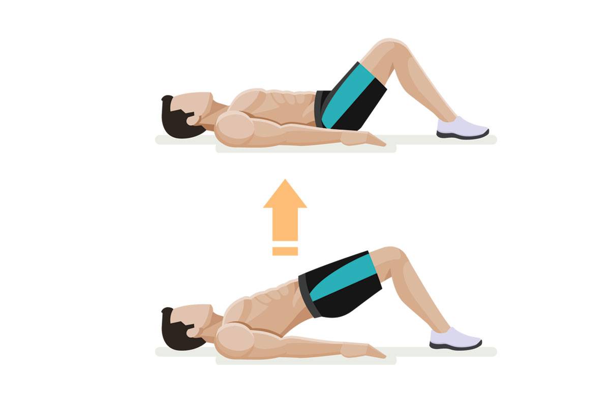 Еще одно упражнение для развития нижнего пресса и укрепления ягодиц. На выдохе поднимите бедра вверх, затем задержитесь в верхней точке. Плюсом данного упражнения станет и улучшение осанки — в частности, коррекция переднего наклона таза, возникающего от сидячей работы.