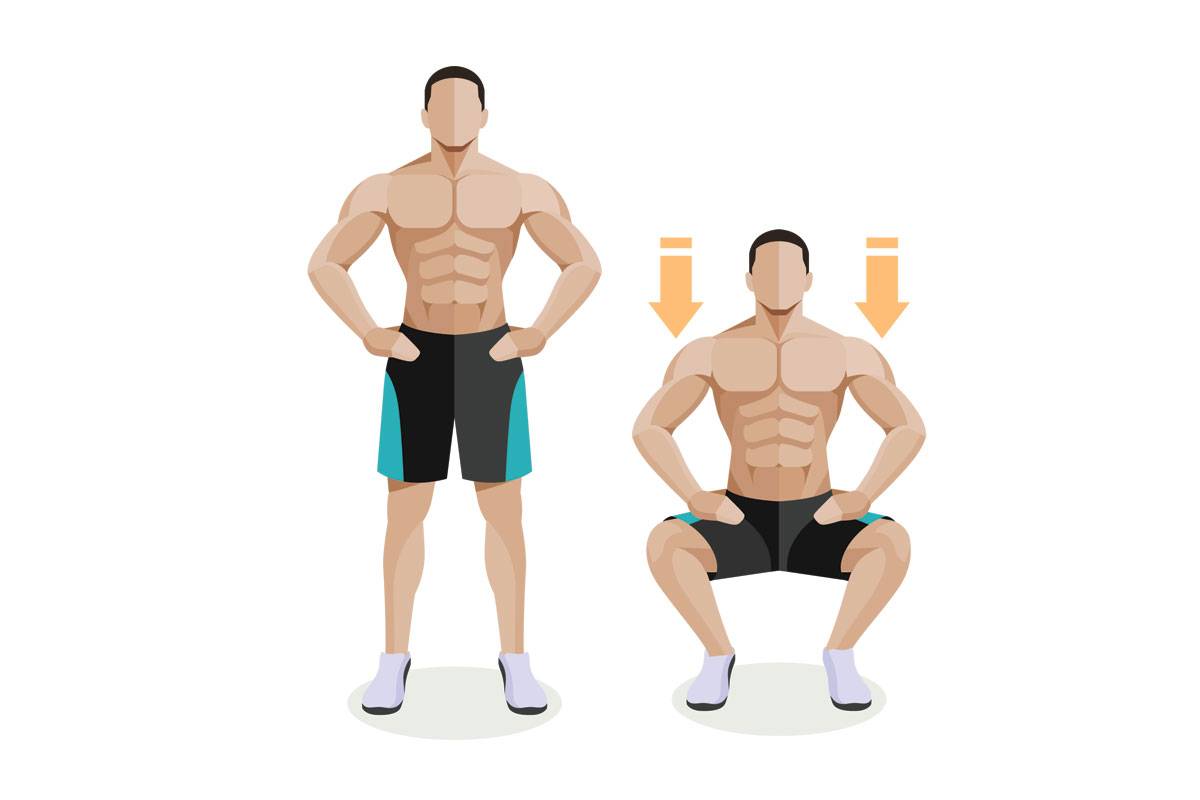 Главное домашнее упражнение для мышц передней поверхности бедра и ягодиц. На выдохе опуститесь вниз, сохраняя корпус вертикальным, а пресс — напряженным. Выполняйте в быстром темпе 12-15 раз, суммарно 3-4 подхода. Характерное жжение в мышцах — показатель эффективности.
