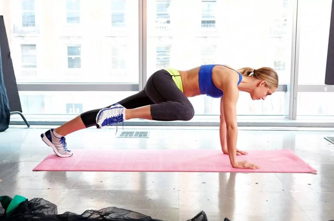 Встаньте в планку. Поочередно сгибайте в колене и выдвигайте в сторону правую и левую ноги. Не поджимайте конечности под себя, держите спину ровной. Продолжительность выполнения — 20 секунд.