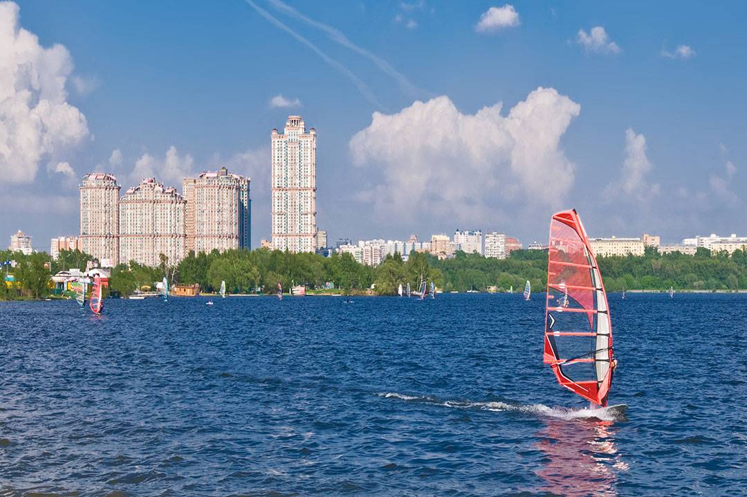 В Москве можно заняться не только вейксёрфингом, но и виндсёрфингом.