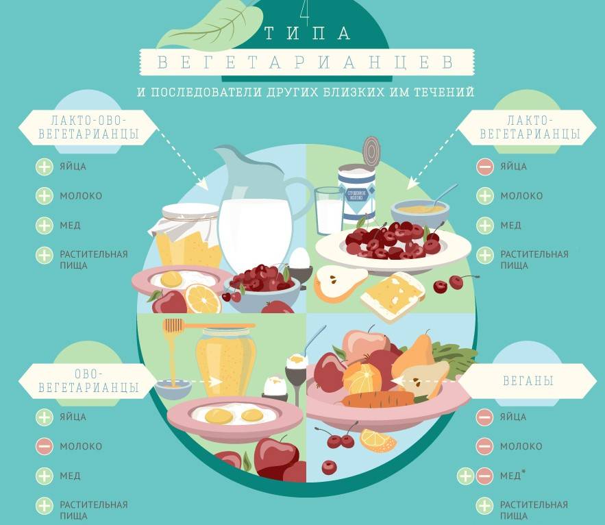Ово-вегетаринаство – помимо мяса они исключают все, что содержит лактозу (продукты из молока) из своего рациона, но разрешено употребление яиц.