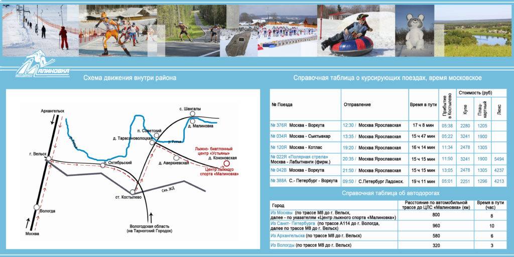 Чтобы попасть на горнолыжный курорт «Малиновка», следует добраться до железнодорожной станции Костылево — от станции до курорта ежедневно ходит рейсовый автобус. Автомобилем нужно добираться по трассе «Москва-Архангельск».