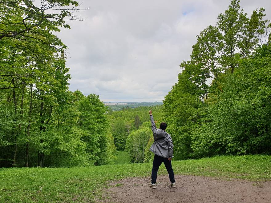 Все едут ради обзорной площадки на Санкт-Петербург. Она находится в самом конце подъема на Ореховую гору, этот подъем я буду называть «Главной дорогой», потому что это широкая тропа, которую невозможно пропустить.