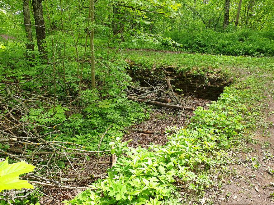 Фундамент заброшенной усадьбы. Посетив Ореховую гору, вы обязательно увидите заброшенную усадьбу деда А. С. Пушкина. Именно он, Абрам Петрович Ганнибал, еще в 18-ом веке соорудил здесь уникальную систему водоснабжения с помощью тайных родничков. Таким образом, пустынная местность превратилась в плодовый сад, рядом с которым расположена река с круговым течением.
