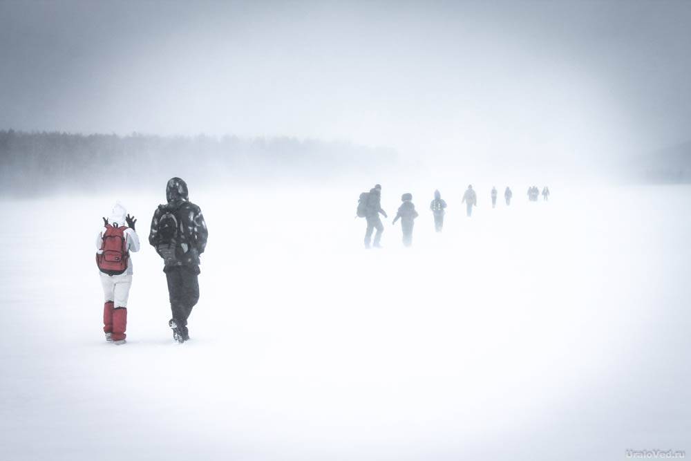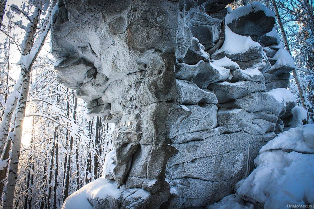 Если вы добираетесь на общественном транспорте, на Вороний камень можно попасть зимой по льду Верх-Нейвинского пруда. Для этого нужно доехать на электричке Екатеринбург – Нижний Тагил до станции Мурзинка и идти по автомобильной дороге в сторону пруда до базы «Дом рыбака» (автомобилисты могут доехать сюда на машине). Далее предстоит идти по льду Верх-Нейвинского пруда на восток, мимо южного берега острова Ельничный (он самый большой на пруду). Ориентир – седловина между двух горок на восточном берегу пруда (самая высокая из них – как раз гора Березовая). В конце, чтобы выйти на берег, предстоит пройти через заболоченный залив, заросший камышами (это место называется Большое Дикое). Лед в болоте местами не замерзает, можно провалиться. Левее седловины к пруду подходит мыс. Вот туда и нужно идти.