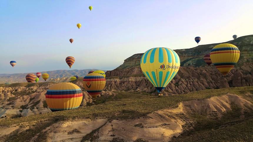 Каппадокия, как вы уже поняли — место, где полеты на воздушных шарах являются развитым и массовым видом отдыха. Вам нужно будет добраться до города Ургюп, что в 70 км от Кайсери, где находится ближайший гражданский аэропорт (ASR). До Кайсери выполняется несколько ежедневных рейсов из Стамбула (IST и SAW) местными авиакомпаниями: Turkish Airlines, Anadolujet, Pegasus Airlines и пр. Лететь около полутора часов. До самого Стамбула, ясное дело, летает множество различных авиакомпаний — от «Аэрофлота» и Turkish Airlines до Onur Air и «Победы». Покупка двух раздельных билетов до Стамбула и до Кайсери может помочь вам неплохо сэкономить (а заодно и провести пару дней в Стамбуле).