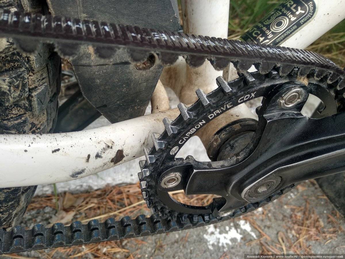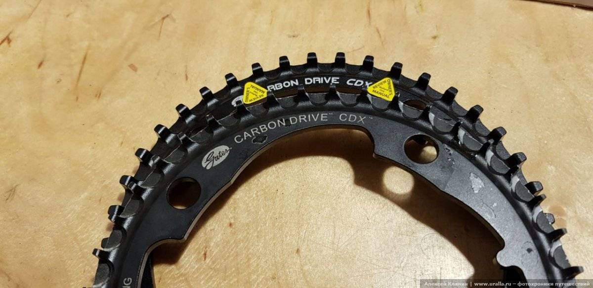 Когда сухо, много пыли или наоборот — грязно, ремень имеет свойство скрипеть. Это частички абразива трутся между зубьями ремня и звезды. В походе обычно это решалось поливанием ремня водой. В этом году нашел замечательное средство, решающее проблему скрипа и соответственно износа. Жидкое мыло. Самое дешевое в пакетике как майонез. С крыжечкой. 40 рублей за штуку. 2/3 ушло на герметик (кстати работает замечательно и зимой и летом, забыл про подкачивание колес), а остальное вожу с собой и смазываю ремень. Скрипа не стало. В дождь ремень покрывается пеной, все это можно легко смыть и ремень остается чистый. Достаточно его еще раз немного смазать жидким мылом и когда все это высохнет, скрипа не будет. 🙂