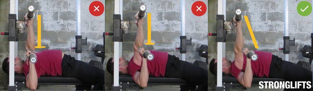 Важно установить такой наклон, чтобы трёхглавые мышцы минимально вовлекались в работу, а дельты ещё не успели забрать часть нагрузки. Такой золотой серединой является угол приблизительно 30о — в этом случае грудная мускулатура загружается максимально
